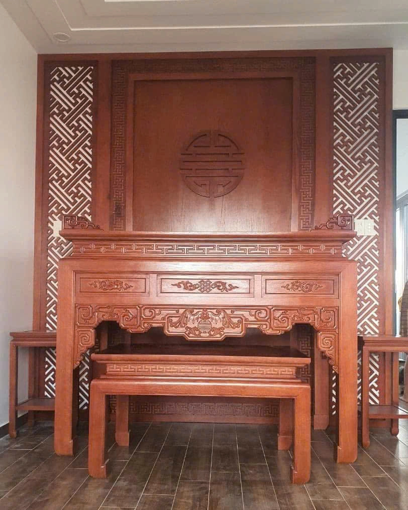 Sản phẩm được chế tác từ gỗ tự nhiên cao cấp, mang lại sự bền bỉ, sang trọng và giữ được vẻ đẹp theo thời gian. Những hoa văn CNC tinh xảo không chỉ tăng thêm tính thẩm mỹ mà còn chứa đựng nhiều ý nghĩa tâm linh, tạo nên không gian thờ cúng thanh tịnh, ấm áp.
